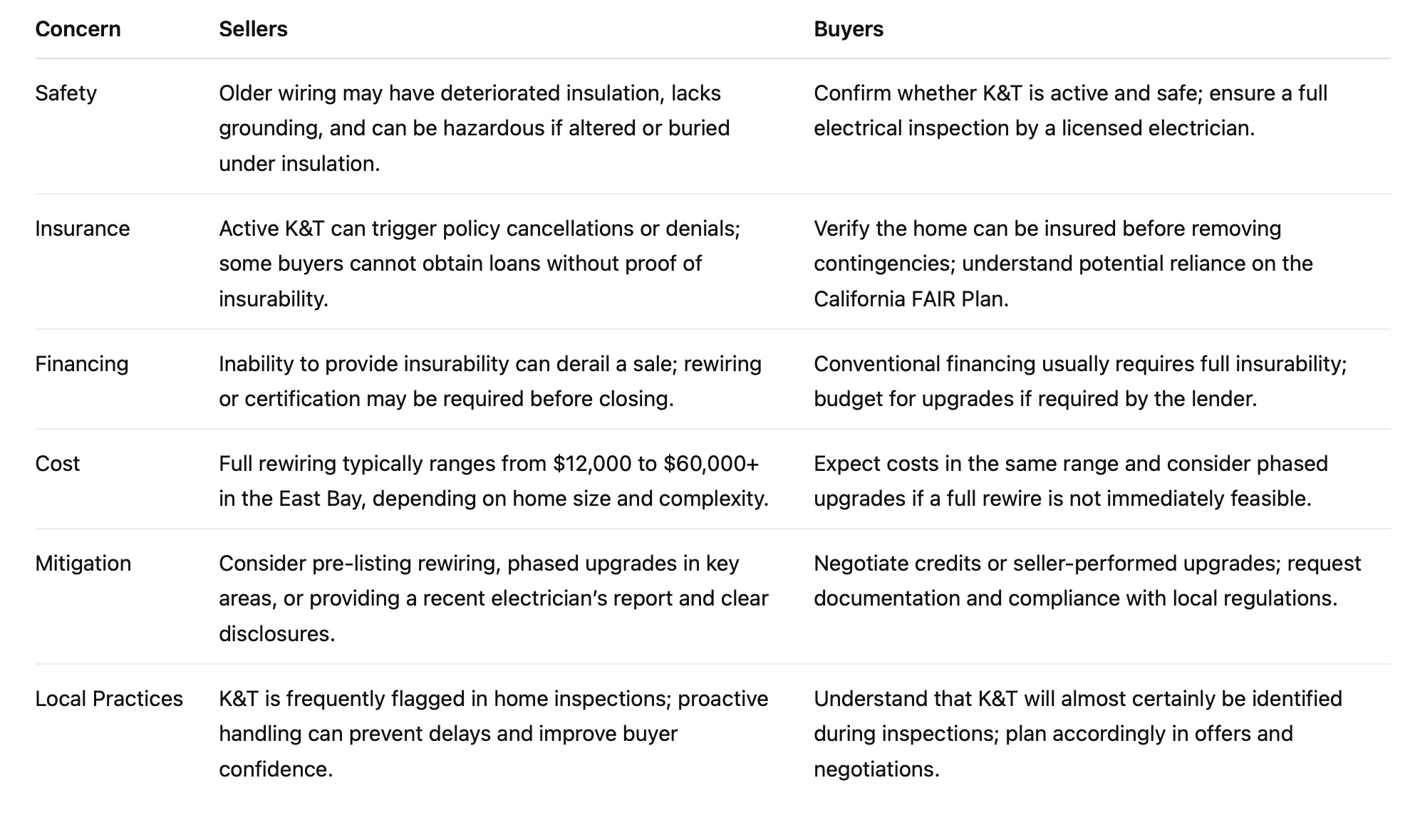 K&T Summary Table