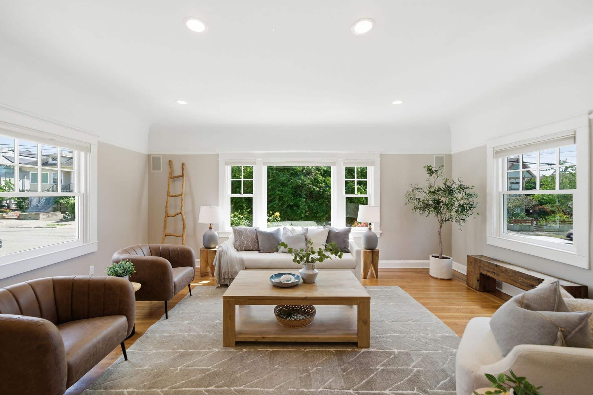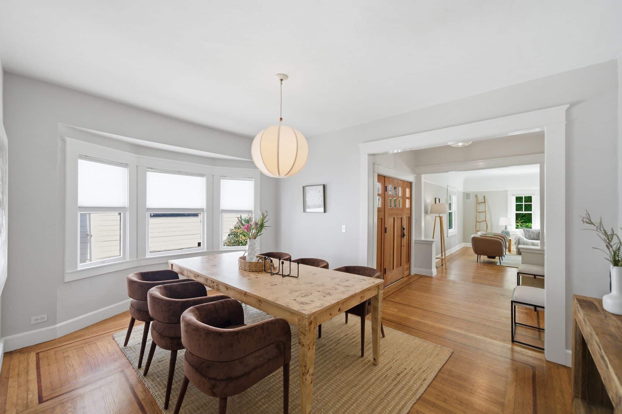 Craftsman origins | Hardwood floors throughout | New Marvin living room windows | Reimagined foyer with new front door and sidelights | Updated dining room | Kitchen island and custom stack | New quartz countertops | New kitchen backsplash tiling | LG refrigerator | LG gas range | Bosch dishwasher | Panasonic built-in microwave | Samsung 36″ range hood | Maytag front-load washer and gas dryer | Back bathroom fully renovated | Attic bedroom, office, or studio | Juliet balcony | New rear steps to yard | Flagstone patio and rock garden | Rebuilt garage with new foundation and framing | Garage storage unit | Dedicated garage electrical | Full seismic retrofit | New subpanel and complete house grounding | Decommissioned knob and tube | High-efficiency furnace (2023 Goodman, 96.1% AFUE) | New sewer lateral | Entryway hardwood floors refinished | Fresh interior and exterior paint | New bathroom, hallway, and dining room light fixtures | $179,730 in documented improvements