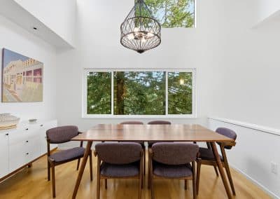 A comprehensive systems overhaul in 2021 introduced a new furnace with insulated ducts, a Carrier air conditioner controlled by Nest thermostats, and a Navien tankless water heater for energy-efficient living. Dual-pane windows and sliding doors were added throughout the home, bringing warmth, quiet, and clarity to the interior. The primary suite features a remodeled shower and custom wall-mounted closet system, while the living area benefits from smart shades and dimmable lighting. In 2025, the exterior received a full paint and shingle refresh, giving the home a crisp, contemporary look that complements its natural setting.