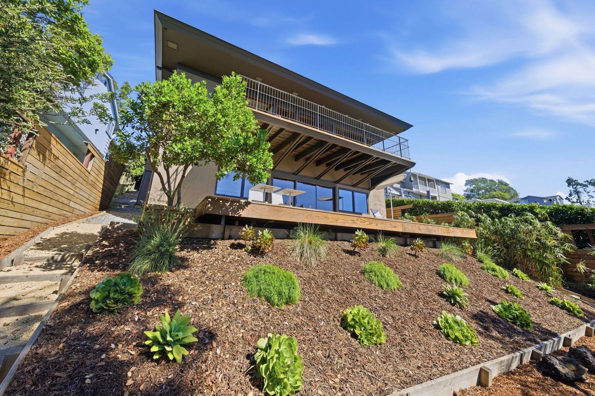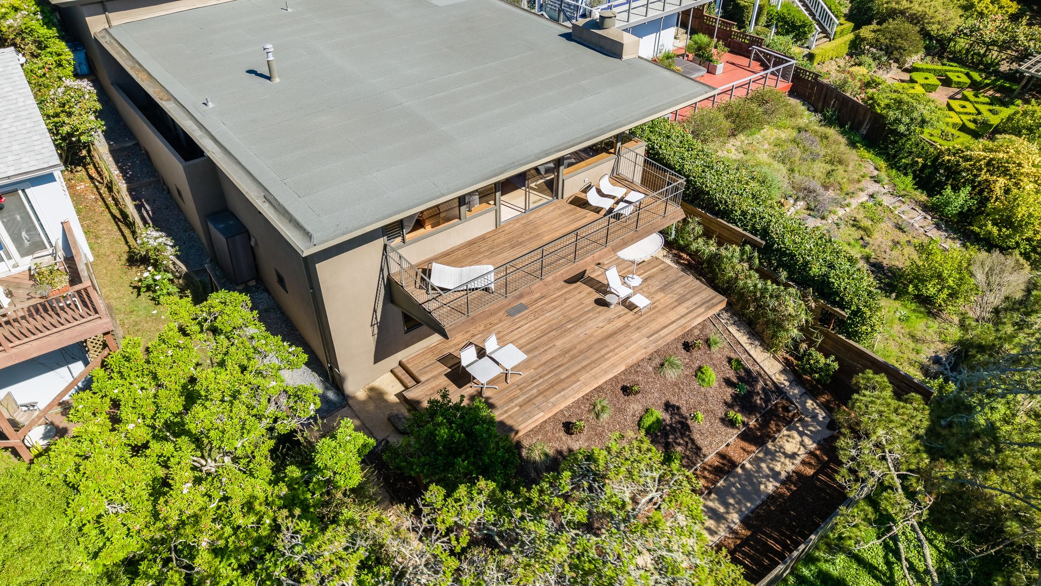Since 2012, the owners have invested nearly $470,000 in thoughtful, high-quality improvements, touching every system and surface while preserving everything that makes the architecture special. The grounds are drought-tolerant and beautifully maintained, with rebuilt redwood decks and fencing, copper downspouts, and a fully repainted exterior.