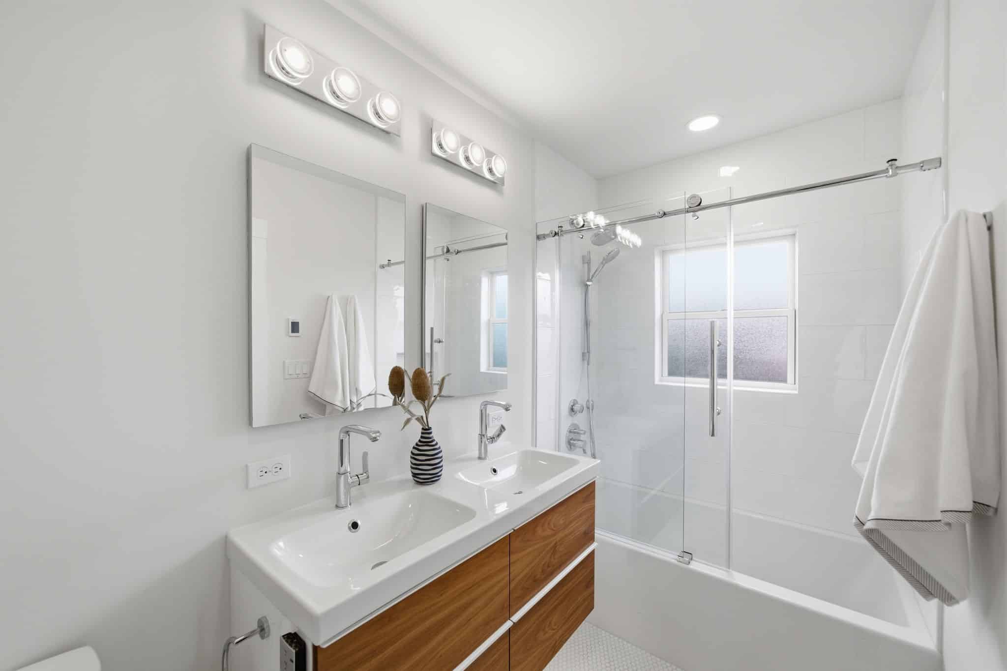 In 2018, a full bedroom and bathroom addition brought the home to two bedrooms and two baths. The addition was done with genuine care: Hansgrohe fixtures, radiant heated floors, Toto toilets, and a Toto washlet in the primary bath give it a spa-like quality that belies the home’s modest footprint. An on-demand hot water filter, solar, and a matched set of Miele washer and dryer round out the package. The home carries a Home Energy Score of 10, the highest possible rating, a rare and meaningful distinction that reflects the cumulative investment in efficiency, systems, and sustainability.
