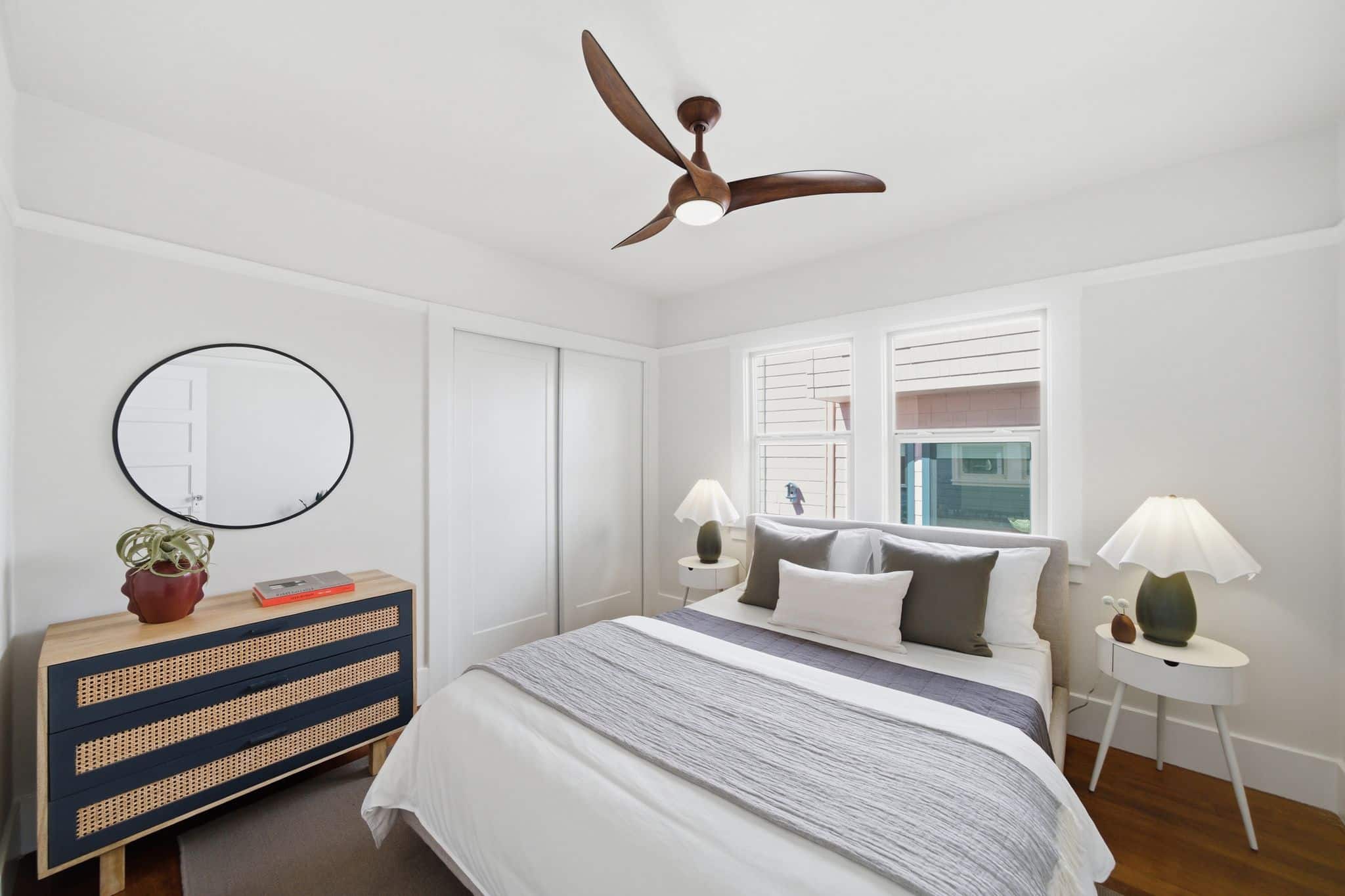 1922 Craftsman Bungalow | Thousand Oaks Neighborhood | Fresh Interior & Exterior Paint | Fully Remodeled Modern Kitchen | Hardwood Floors Throughout | Custom Cabinetry | Dual-Pane Windows | Fireclay Tile Fireplace | 2018 Bedroom & Bathroom Addition | Matching Miele Washer/Dryer | Hansgrohe Fixtures | Radiant Heated Floors | Toto Toilets | Toto Washlet in Primary Bath | On-Demand Hot Water Filter | Solar | New Lennox HVAC (2021) | Seismic Retrofit | Copper Piping | Sewer Lateral (2012) | Finished Bonus Room | Long 3-Car Driveway | Back Yard with Lawn and Mature Trees | Home Energy Score of 10
